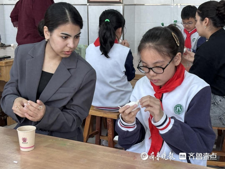 鲁东大学履行小学四年纪的学生是本次行径的小搭档,“今天我和留学生姐姐一齐体验了泥塑课,咱们一齐聊天罕见欢跃,况且我当他们的小老诚,携带他们完成了作品罕见的欢跃,我看见他们的作品罕见好,我嗅觉罕见欢跃和骄贵。”小学生曹雅婷说。