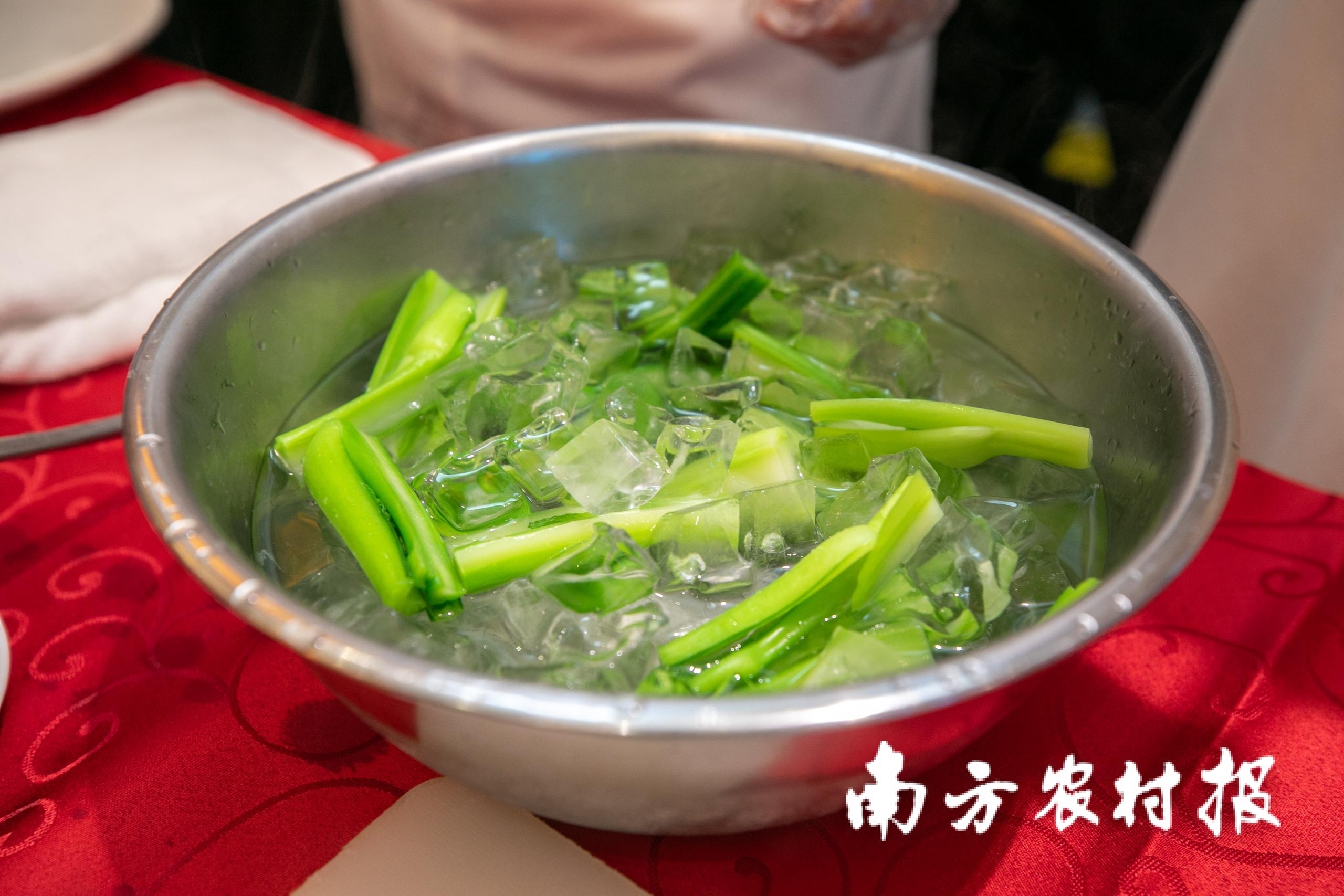 连州菜心过滚水后,再过一遍冰水,口感更脆嫩。