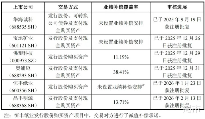 此外,奥浦迈、华海诚科、晶丰明源均属于科创板,自“并购六条”发布以来,科创板并购硬科技属性方向,对事迹的优容度原来就更高,收购失掉方向不设事迹应允亦有前例。