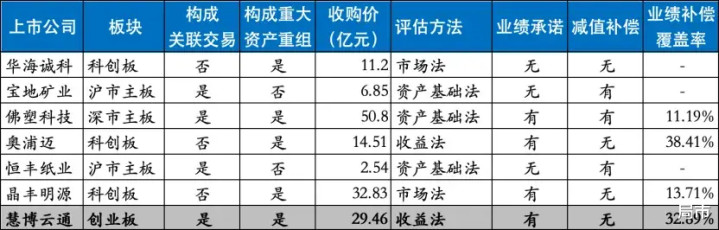 在慧博云通所列举的六个案例当中,只消华海诚科收购衡所华威既无事迹应允也无减值抵偿,宝地矿业和恒丰纸业均开垦了减值抵偿。佛塑科技和晶丰明源开垦了事迹应允,但粉饰率比慧博云通更低。