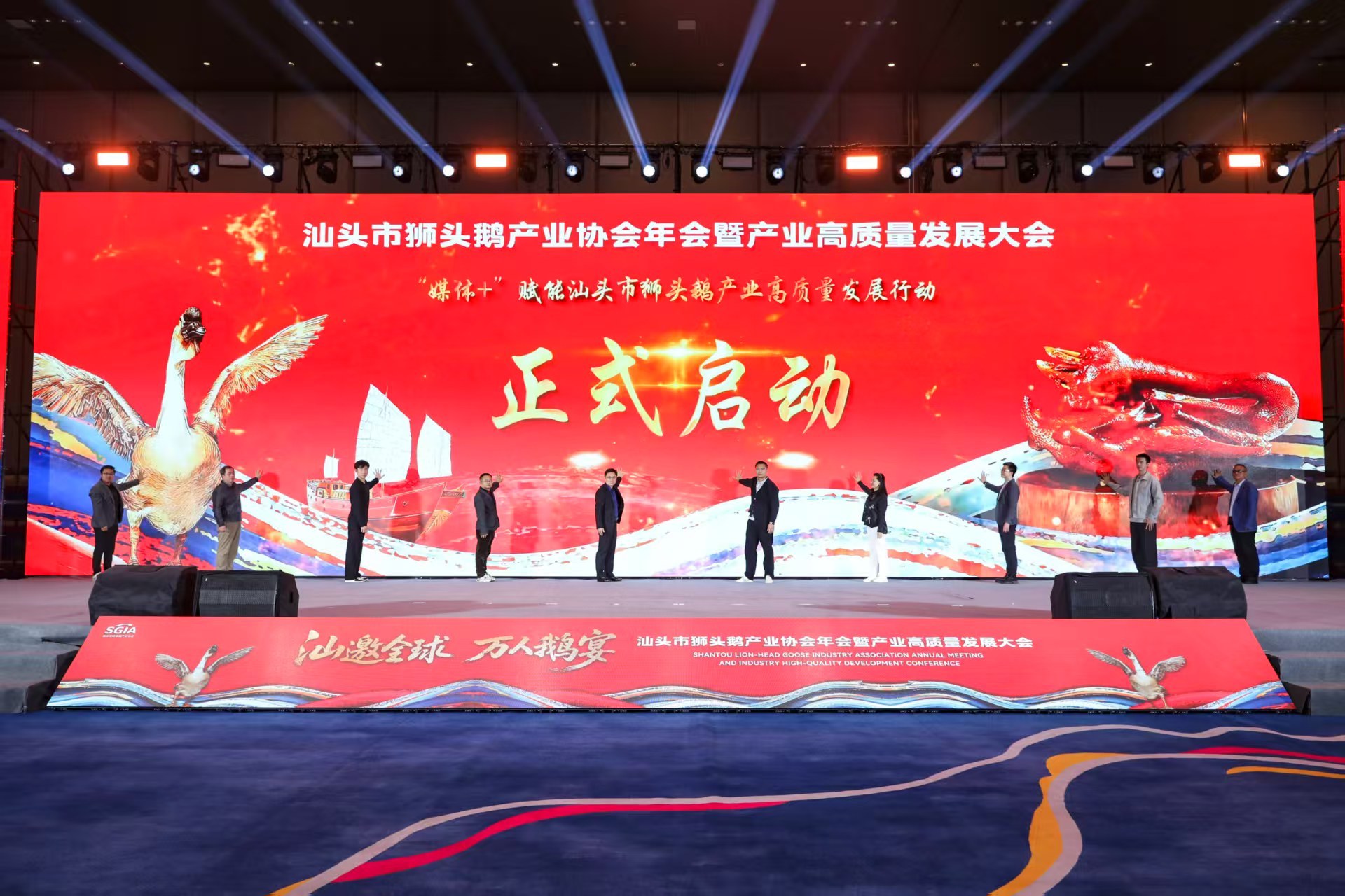 1月17日晚,“汕邀全球 万东谈主鹅宴”汕头市狮头鹅产业协会年会暨产业高质地发展大会在汕头国际会展中心举行,会上厚爱运转了“媒体+”赋能汕头市狮头鹅产业高质地发展步履,并发布步履筹划。据悉,该步履旨在系统推动“媒体+”,深度赋能狮头鹅产业发展,聚焦面貌落地与实效进步,落实“广货行六合”策略部署。
