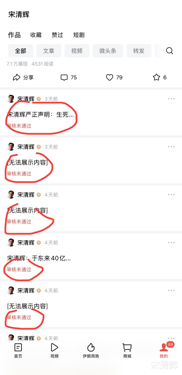 宋清辉抖音对于胖东来的部分视频被不容播放,此前播放正常
