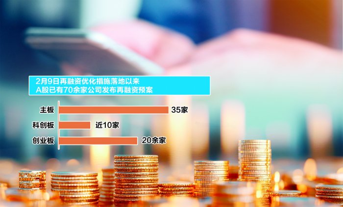 自2月9日优化再融资一揽子设施发布以来,A股再融资阛阓呈现彰着的升温态势。据上海证券报记者统计,2月9日于今,A股已有70余家上市公司发布再融资预案,其入彀算机、通讯和其他电子拓荒制造业公司再融资较为活跃,科创板及创业板公司再融资需求强劲。从募资投向来看,大部分公司的募投技俩用于主业膨胀,或加码科技革命,打造新增长点。