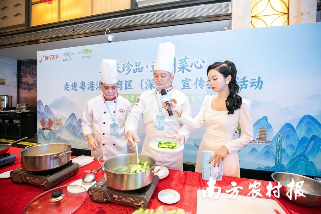 1月16日,“天禀风土・牢固清远”清远市暖冬消耗季暨粤味珍品・连州菜心走进粤港澳大湾区(深圳)宣传推介系列行为在深圳市北海渔村举办。行为现场嘉宾云集、香气氤氲,深圳市餐饮行业协会会长、深圳市日月永和餐饮有限公司董事长王克明登台致辞,深圳市餐饮行业协会名厨委主席邓永宏等烹饪众人现场表演,一场以连州菜心为中枢的可口盛宴,让在场者千里浸式感受粤味珍品的独到魔力,也印证了这一清远特质农居品在深圳餐饮行业的超高手气。